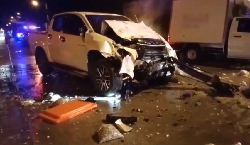 ชลบุรี 6 ส.ค.- รถกระบะหอยนางรมจะไปส่งตลาดมหาชัยชนกับรถไก่สดจะไปส่งระยองกลางสี่แยกหนองใหญ่-ชลบุรี เมื่อเช้ามืด บาดเจ็บ 3 สินค้ากระจายเกลื่อนกลาด