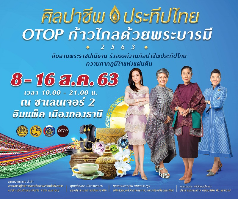 เมืองทองธานี 8 ส.ค.- พช.ชู 4 ผลิตภัณฑ์โอทอปต้นแบบ ผู้สืบสานภูมิปัญญาแผ่นดิน พัฒนาสู่ความเข้มแข็ง ต่อยอดการตลาดออฟไลน์-ออนไลน์พลิกฟื้นวิกฤติโควิด-19 สู่ความสำเร็จ สร้างงานสร้างอาชีพสู่ชุมชนทั่วประเทศ เสริมแกร่งเศรษฐกิจฐานรากมั่นคง พร้อมเชิญชวนเที่ยวงาน OTOP ศิลปาชีพ วันที่ 8 – 16 ส.ค. ณ อิมแพ็คฯ เมืองทองธานี