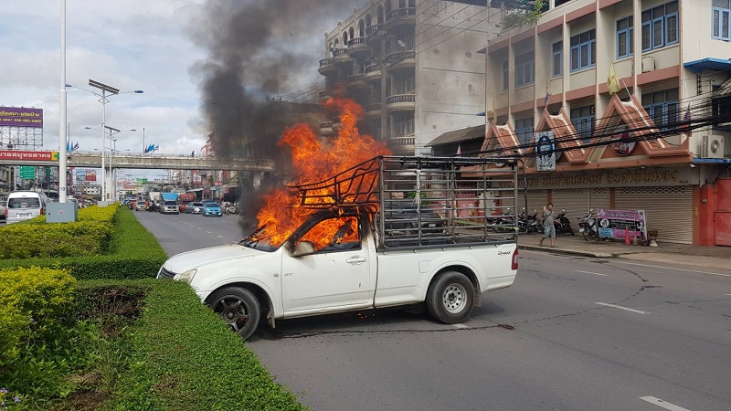 นายวัชระ ไผ่สมบูรณ์ อายุ 37 ปี คนขับให้การว่า ขณะเดินทางกลับจากส่งของ เมื่อมาถึงสะพานวัดเจษสังเกตว่ามีควันเล็กน้อยลอยออกมาใต้คอนโซล จึงขับข้ามสะพานไปแล้วมาจอดดูก็ไม่มีควันออกมาอีก จากนั้นได้ขับต่อไปถึงทางแยก เพื่อจะเลี้ยวขวา ควันก็ลอยออกมามากขึ้นและรีบจอดรถ พร้อมดับเครื่องและรีบถอดขั้วแบตเตอรี่ออก เพราะขณะนั้นเริ่มมีเปลวไฟลุกไหม้ แต่ไม่เป็นผล ไฟได้ลุกลามภายในห้องโดยสารอย่างรวดเร็ว และไม่ทราบว่าเป็นเพราะสาเหตุใด.-สำนักข่าวไทย