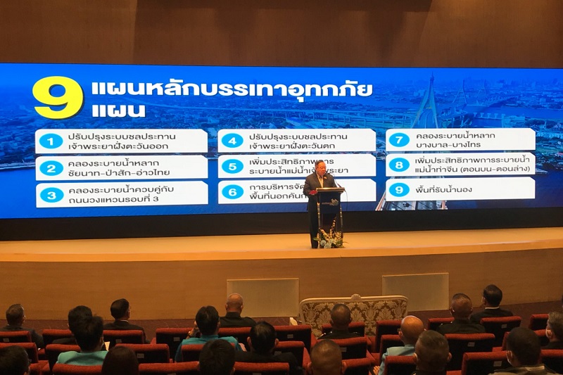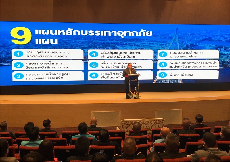 ทั้งนี้ นอกจาก 8 มาตรการเร่งด่วนแล้ว รัฐบาลยังได้มอบหมายให้มีการจัดทำแผนงานหลักบริหารจัดการทรัพยากรน้ำของลุ่มน้ำเจ้าพระยา ซึ่งเป็นลุ่มน้ำที่ครอบคลุมพื้นที่ขนาดใหญ่ และมีความสำคัญอย่างยิ่งต่อเศรษฐกิจและสังคมของประเทศ โดยเป็นแผนงานระยะยาวที่เน้นเพื่อบรรเทาปัญหาอุทกภัย จำนวน 9 แผน ซึ่งที่ผ่านมา สทนช. รับหน้าที่เป็นหน่วยงานหลักในการดำเนินโครงการศึกษาจัดลำดับความสำคัญ โดยเป็นการศึกษาอย่างรอบคอบให้ทุกแผนงานโครงการเกิดความคุ้มค่ามากที่สุด และต่อจากนี้ได้มอบหมายให้ สทนช. เร่งบูรณาการแผนหลักดังกล่าวกับหน่วยงานปฏิบัติขับเคลื่อนให้เกิดผลสัมฤทธิ์โดยเร็ว เพื่อช่วยบรรเทาอุทกภัยในพื้นที่ลุ่มน้ำเจ้าพระยา เพิ่มศักยภาพในการใช้ประโยชน์พื้นที่ด้านการเกษตร แก้ปัญหาและพัฒนาในทุกมิติต่อไป อย่างไรก็ตาม เพื่อให้การดำเนินการตามมาตรการดังกล่าวให้เกิดผลสำเร็จ ได้เน้นย้ำให้ทุกภาคส่วนทั้งภาคเอกชนและประชาชนมีส่วนร่วมในการจัดการน้ำในพื้นที่กับภาคราชการ และสร้างการรับรู้อย่างต่อเนื่องเพื่อสร้างความเชื่อมั่นในการสร้างความมั่นคงด้านน้ำให้กับประชาชนด้วย