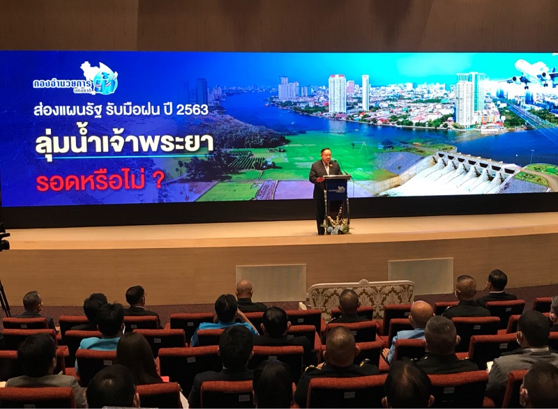 วันนี้ (14 ส.ค. 63) พลเอกประวิตร วงษ์สุวรรณ รองนายกรัฐมนตรี ในฐานะผู้อำนวยการกองอำนวยการน้ำแห่งชาติ (กอนช.) เป็นประธานพิธีเปิดพร้อมกล่าวมอบนโยบายการประชุมเสวนา เรื่อง “ส่องแผนรัฐ รับมือฝน ปี 2563 ลุ่มน้ำเจ้าพระยา รอดหรือไม่ ?” โดยมีหัวหน้าส่วนราชการ หน่วยงานภาครัฐ เอกชน ผู้ทรงคุณวุฒิ ผู้แทนเกษตรกร ผู้แทนภาคอุตสาหกรรม และนักวิชาการ กว่า 200 คน เข้าร่วมงาน ณ ห้องประชุมออดิทอเรียม ชั้น 2 อาคารศูนย์ประชุมวายุภักษ์ โรงแรมเซ็นทรา บาย เซ็นทาราศูนย์ราชการและคอนเวนชันเซ็นเตอร์ แจ้งวัฒนะ โดยภายในงานมีการจัดนิทรรศการการดำเนินงานของกองอำนวยการน้ำแห่งชาติ (กอนช.) เพื่อเตรียมการรับน้ำหลากในพื้นที่ลุ่มน้ำเจ้าพระยา การบรรยายในหัวข้อ “9 แผนงานเพื่อบรรเทาอุทกภัยลุ่มน้ำเจ้าพระยา” และการเสวนา เรื่อง “ส่องแผนรัฐ รับมือฝน ปี 2563 ลุ่มน้ำเจ้าพระยา รอดหรือไม่ ?” โดยมี ผู้ร่วมเสวนา ประกอบด้วย ดร.สมเกียรติ ประจำวงษ์ เลขาธิการสำนักงานทรัพยากรน้ำแห่งชาติ (สทนช.) รศ.ดร.เสรี ศุภราทิตย์ ผู้อำนวยการศูนย์การเปลี่ยนแปลงภูมิอากาศและภัยพิบัติ มหาวิทยาลัยรังสิต นายชวลิต จันทรรัตน์ ผู้เชี่ยวชาญด้านทรัพยากรน้ำ ดร. ทวีศักดิ์ ธนเดโชพล รองอธิบดีกรมชลประทาน และนายณรงค์ เรืองศรี ผู้อำนวยการสำนักการระบายน้ำ กรุงเทพมหานคร