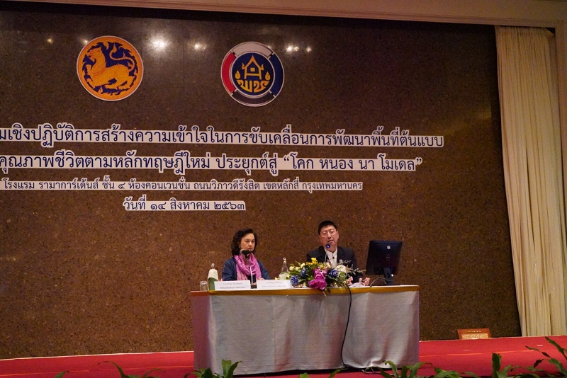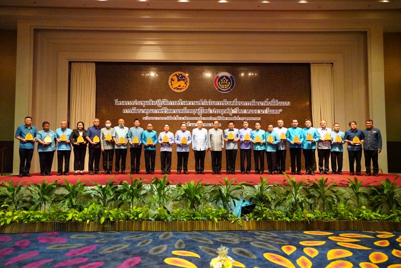 ด้านนายสุทธิพงษ์ จุลเจริญ อธิบดีกรมการพัฒนาชุมชน กล่าวว่า กรมการพัฒนาชุมชน มีเป้าหมายสำคัญคือ เศรษฐกิจฐานรากมั่นคง และชุมชนพึ่งตนเองได้ โดยการขับเคลื่อนภารกิจดังกล่าวได้คำนึงถึงศักยภาพจากฐานเดิม ที่มีอยู่ และโอกาสภายใต้บริบทใหม่แล้ว ยังต้องสอดคล้องกับทิศทางการพัฒนาประเทศไทยในระยะยาวที่ต้องการลดความเหลื่อมล้ำ และสอดคล้องกับเป้าหมายการพัฒนาที่ยั่งยืนระดับโลก โดยน้อมนำหลักปรัชญาของเศรษฐกิจพอเพียงมาเป็นกรอบแนวทางในการดำเนินงาน ในปีงบประมาณ พ.ศ. 2563 กระทรวงมหาดไทย ได้มอบหมายให้กรมการพัฒนาชุมชน ขับเคลื่อนโครงการสำคัญ คือ การพัฒนาหมู่บ้านและชุมชนท้องถิ่นตามหลักปรัชญาของเศรษฐกิจพอเพียง โดยครอบคลุมหมู่บ้านชุมชนทั้งหมด 35,032 หมู่บ้าน/ชุมชน โดยกิจกรรมที่ได้ดำเนินการ ในระยะแรกคือ การลดรายจ่าย สร้างรายได้ระยะสั้น ทั้งในระดับครัวเรือนและระดับกลุ่มอาชีพ โดยการน้อมนำโครงการบ้านนี้มีรัก ปลูกผักกินเอง ในพระราชดำริของสมเด็จพระกนิษฐาธิราชเจ้า กรมสมเด็จพระเทพรัตนราชสุดาฯ สยามบรมราชกุมารี มาขยายต่อยอดสู่กิจกรรม แผนปฏิบัติการ 90 วัน “ปลูกผักสวนครัว เพื่อสร้างความมั่นคงทางอาหาร” ระยะที่ 1 ดำเนินการระหว่างวันที่ 1 เมษายน-30 มิถุนายน 2563 มีครัวเรือนเป้าหมายทั้งหมดจำนวน 12.9 ล้านครัวเรือน ซึ่งเป็นที่น่ายินดีอย่างยิ่งว่ามีพี่น้องประชาชนทั่วประเทศร่วมปลูกผักสวนครัวถึง 12,601,491 ครัวเรือน คิดเป็น 97.11% พี่น้องประชาชนที่ร่วมโครงการได้รับประโยชน์อย่างเป็นรูปธรรม มีผักกินในบ้านโดยที่ไม่ต้องซื้อหา “ปลูกผักที่กิน กินผักที่ปลูก” ประหยัดรายจ่าย หากคิดมูลค่าเพียง 50 บาทต่อวัน 12 ล้านครัวเรือน สามารถประหยัดเงินได้มากกว่า 200,000 ล้านบาท/ปี นอกจากนี้ยังเกิดการแบ่งปันกัน ช่วยเหลือ เอื้ออาทรประโยชน์ที่ได้มากกว่าการประหยัด คือ การรักษาสุขภาพ เพราะเป็นผักปลอดภัย และกรมการพัฒนาชุมชนได้ดำเนินการต่อเนื่องเป็นระยะที่ 2 เพื่อสร้างวัฒนธรรมปลูกพืชผักประจำครัวเรือน ดำเนินการขับเคลื่อนระหว่าง 1 กรกฎาคม ถึง 5 ธันวาคม 2563 ภายใต้แนวคิด “ความต่อเนื่องคือพลัง” ส่งเสริมการปลูกพืชผักเพิ่มเติม “ทำเป็นบ้านสานเป็นกลุ่ม” ส่งเสริมให้เกิดการรวมกลุ่มเพื่อบริหารจัดการผลผลิตส่วนเกิน ให้มีมูลค่าเพิ่ม “ชุมชนสีเขียวเป็นมิตรกับสิ่งแวดล้อม” สร้างจิตวิญญาณรักสิ่งแวดล้อม “จากวัฒนธรรม สู่นวัตกรรม” ส่งเสริมให้เกิดนวัตกรรมที่เกี่ยวข้องกับอาหารและของใช้ต่าง ๆ ในชีวิตประจำวันจากพืชผัก และสิ่งสำคัญคือเพื่อตอบสนองต่อเป้าหมายการพัฒนาที่ยั่งยืน เป้า