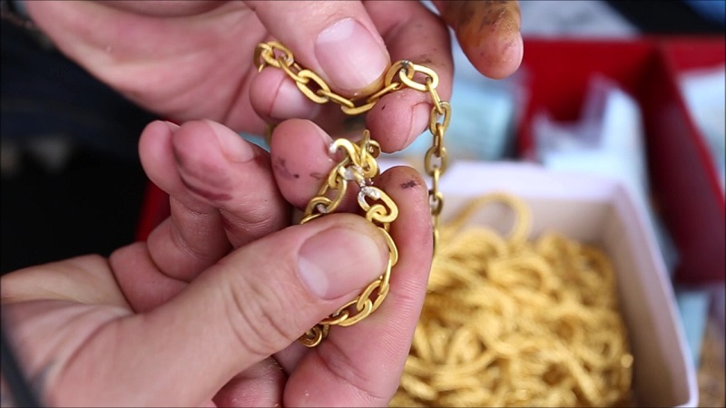 เจ้าของร้านที่เสียหาย เล่าว่า พฤติการณ์ของมิจฉาชีพจะเข้ามาชวนคุยและบอกว่าทำงานรับเหมาก่อสร้างต้องนำเงินไปจ่ายค่าแรงคนงานก่อน โดยปกติการจำนำทองทางร้านไม่สามารถจะทำการกรีดทองลูกค้า เพื่อดูเนื้อได้ข้างในได้ ตอนแรกที่เข้ามาจำนำทองจะเป็นชายชรานำทองมาจำนำเส้นละ 4 บาท จากนั้นก็จะมีอีกคนเดินเข้ามาจำนำเรื่อย ๆ มีทั้งคนไทยและต่างด้าว แต่ละคนจะมียอดจำนำ 72,000 บาท 96,000 บาท 120,000 บาท จะเป็นยอดเดิมๆ ลายเดิม ๆ น้ำหนักทองเท่าเดิม แบบนี้ตลอด