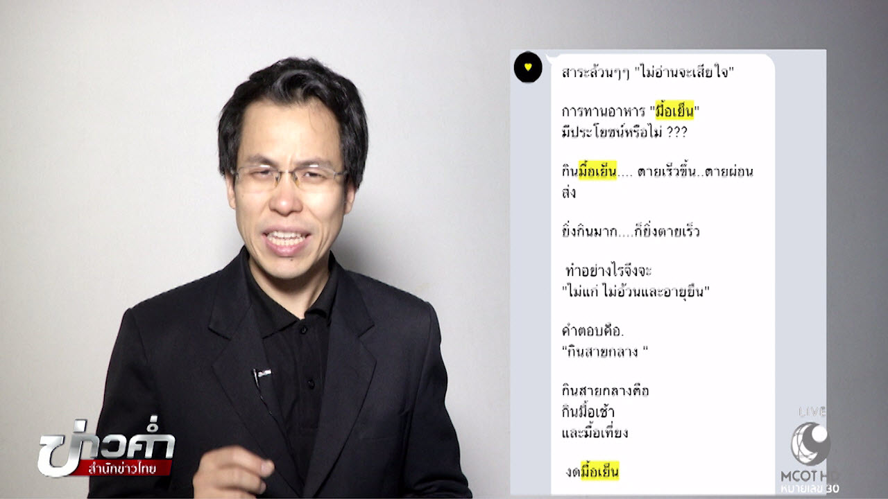 กรุงเทพฯ 14 ธ.ค.-บนสังคมออนไลน์มีการแชร์เตือนว่า ให้งดกินอาหารมื้อเย็น เพราะยิ่งกินมาก ยิ่งส่งผลเสียต่อสุขภาพ เรื่องนี้จริงหรือไม่ ติดตามจากศูนย์ชัวร์ก่อนแชร์.-สำนักข่าวไทย
