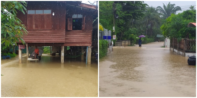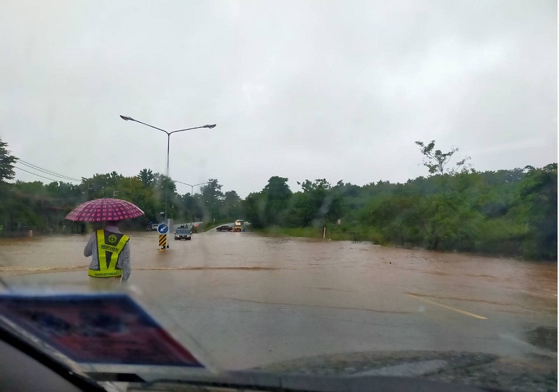 ส่วน อ.เมือง น้ำจากลำห้วยทะลักท่วมถนนสายน่าน–บ้านหลวง บริเวณบ้านถืมตอง ต.ถืมตองรถเล็กไม่สามารถผ่านได้
