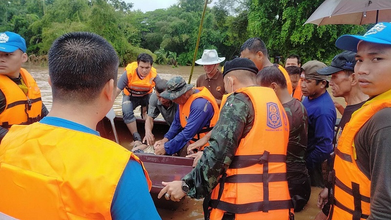 สถานการณ์น้ำท่วมจังหวัดน่านจากฝนตกต่อเนื่องเมื่อคืนที่ผ่านมา ล่าสุด (21 ส.ค.) แม่น้ำน่าน และลำน้ำสาขายังคงมีปริมาณน้ำสูงขึ้น เนื่องจากฝนตกเป็นระยะตลอดทั้งวัน ทำให้น้ำท่วมขยายวงกว้างพื้นที่ริมฝั่ง 4 อำเภอ ได้แก่ อ.เมือง,ภูเพียง,เวียงสา,ปัว จำนวน 213 ครัวเรือน ส่วน อ.สันติสุข ชาวบ้านหมู่ 5 ต.ป่าแลวหลวง พลัดจมน้ำขณะออกไปหาจิ้งหรีดตามต้นไม้ เป็นชาย อายุ 62 ปี ทางเจ้าหน้าที่กู้ชีพกู้ภัย อบต.ป่าแลวหลวง ประสานกับมณฑลทหารบกที่ 38 เร่งค้นหาท่ามกลางกระแสน้ำเชี่ยวกราก ซึ่งใช้เวลาค้นหากว่า 2 ชั่วโมง จึงพบศพ