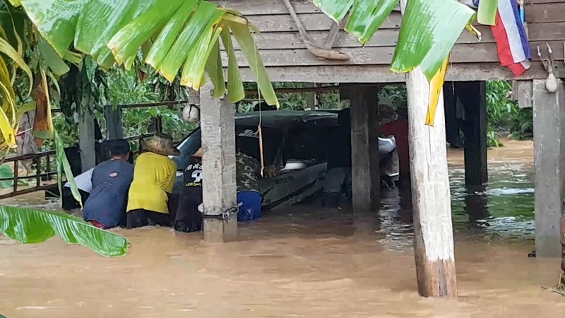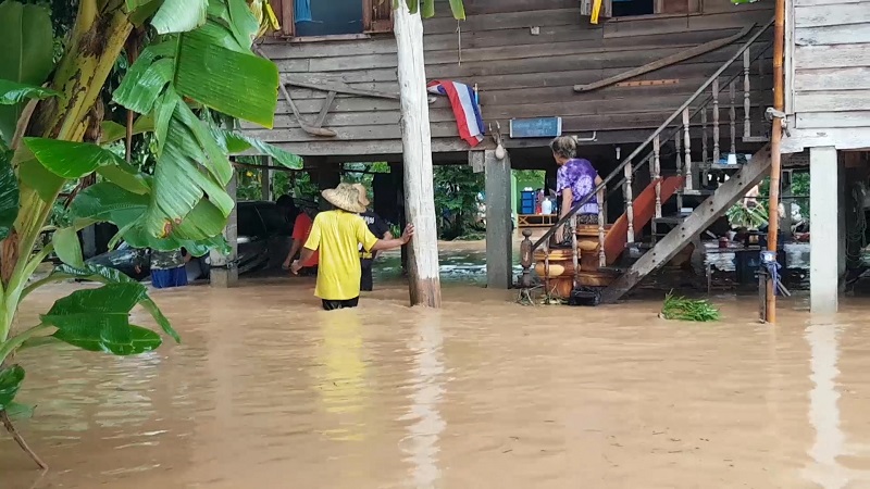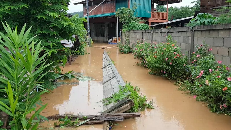 ลำปาง 22 ส.ค.- ลำปางฝนตกอีก น้ำป่าหลากอำเภอแม่ทะรอบ 2 ท่วมฉับพลัน 5 ตำบล 400 หลังคาเรือน ซัดกำแพงรั้วพัง รถจมน้ำ