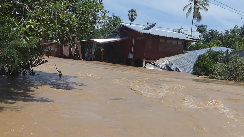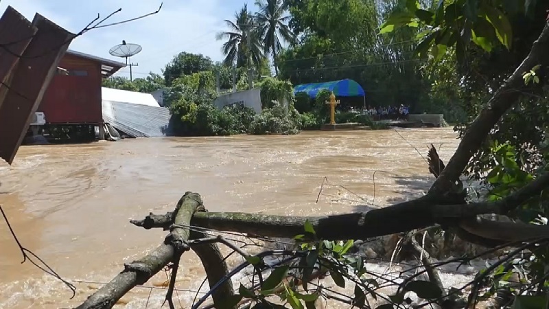สถานการณ์น้ำท่วมจังหวัดสุโขทัยยังน่าห่วง เนื่องจากพนังคันดินกั้นแม่น้ำยมในพื้นที่หมู่ 7 ต.ท่าทอง อ.สวรรคโลก ถูกกระแสน้ำกัดเซาะเสียหาย ทำให้น้ำไหลเชี่ยวเข้าท่วมบ้านเรือนกว่า 100 หลัง โดยเฉพาะหลังที่ปลูกสร้างอยู่ทางไหลของน้ำถูกน้ำซัดอย่างต่อเนื่องตั้งแต่วานนี้ (24 ส.ค.) ล่าสุดบ้านพังไปกับน้ำทั้งหมด ส่วนเจ้าของบ้านต้องหนีออกมาอยู่ด้านนอกก่อนแล้ว และไม่สามารถเก็บทรัพย์สินได้ทัน