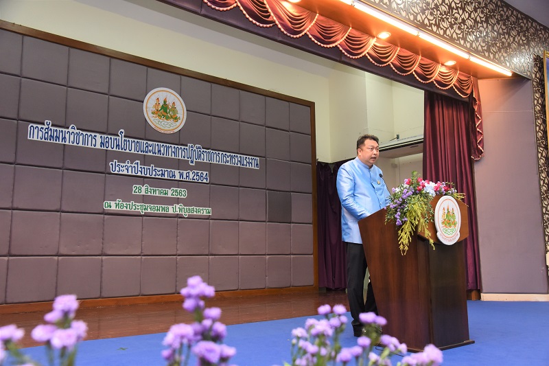 วันที่ 28 สิงหาคม 2563 เวลา 09.00 น. นายสุชาติ ชมกลิ่น รัฐมนตรีว่าการกระทรวงแรงงาน เป็นประธานเปิดการสัมมนาวิชาการ และมอบนโยบายและแนวทางปฏิบัติราชการกระทรวงแรงงาน ประจำปีงบประมาณ พ.ศ.2564 พร้อมด้วย ศาสตราจารย์นฤมล ภิญโญสินวัฒน์ รัฐมนตรีช่วยว่าการกระทรวงแรงงาน มอบนโยบายของกระทรวงแรงงานด้านการพัฒนาฝีมือแรงงาน และการส่งเสริมความปลอดภัย อาชีวอนามัย และสภาพแวดล้อมในการทำงานให้แก่ผู้บริหาร หัวหน้าส่วนราชการในสังกัดกระทรวงแรงงาน จำนวน 700 คน โดยมี นายสุเทพ ชิตยวงษ์ เลขารัฐมนตรีว่าการกระทรวงแรงงาน นายสุทธิ สุโกศล ปลัดกระทรวงแรงงาน และผู้บริหารระดับสูงในสังกัดกระทรวงแรงงาน เข้าร่วมในครั้งนี้ด้วย