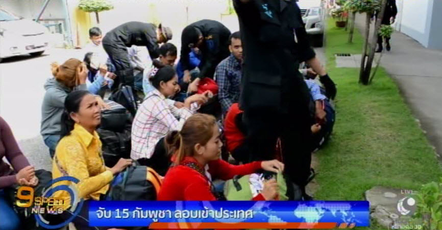 สระแก้ว 27 พ.ย. – ทหารพรานที่ 12 กองกำลังบูรพา สนธิกำลัง ตำรวจ สภ.คลองลึก และ ตม.สระแก้ว จับกุม 15 แรงงานเถื่อนชาวกัมพูชา ชาย 9 คน หญิง 6 คน ขณะแอบลัดเลาะป่าละเมาะข้ามตะเข็บชายแดนไทยบริเวณตลาดโรงเกลือ อ้างหนีมาจากจังหวัดอุดรมีชัย และเสียมราฐ เพื่อเข้ามาทำงานในกรุงเทพฯ เพราะที่บ้านมีฐานะยากจน โดยมาพักรอลักลอบข้ามเขตแดนที่ชายแดนปอยเปต ฝั่งกัมพูชาตั้งแต่วันที่ 26 พฤศจิกายน ก่อนจะมีนายหน้าพามาส่งห่างตลาดโรงเกลือ 10 กิโลกรัม และให้นั่งรถจักรยานยนต์มาลงใกล้ด่านชาย แดน โดยบอกว่าหากข้ามมาได้จะมีรถตู้มารอรับ. -สำนักข่าวไทย