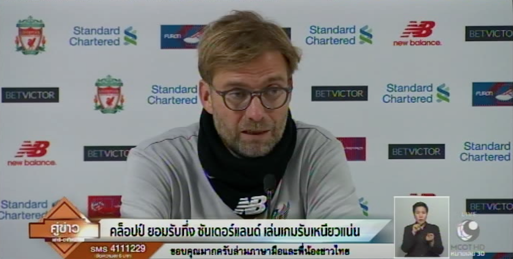หลังเกมพรีเมียร์ลีกนัดที่ “หงส์แดง” ลิเวอร์พูล เปิดบ้านเอาชนะ ซันเดอร์แลนด์ 2-0 จากประตูของ ดิวอก โอริกี นาทีที่75 และเจมส์ มิลเนอร์ จากจุดโทษนาทีที่ 90 ทาง เจอร์เกน คล็อปป์ กุนซือลิเวอร์พูล พอใจกับผลงานของลูกทีม อีกทั้งยังชื่นชม เดวิด มอยส์ กุนซือซันเดอร์แลนด์ ที่วางแผนเล่นอย่างรัดกุม จนกว่าทีม “หงส์แดง” จะเจาะประตูได้ ก็ต้องรอถึงช่วงท้ายเกม นอกจากนี้ยังพูดถึงอาการบาดเจ็บของ ฟิลิเป คูตินโญ ดาวเตะตัวเก่งของทีม ที่บาดเจ็บต้องหามออกจากสนามว่า โชคดีที่ข้อเท้าไม่หัก แต่ต้องรอผลการวินิจฉัยจากทีมแพทย์อีกครั้งว่าต้องพักนานเท่าใด
