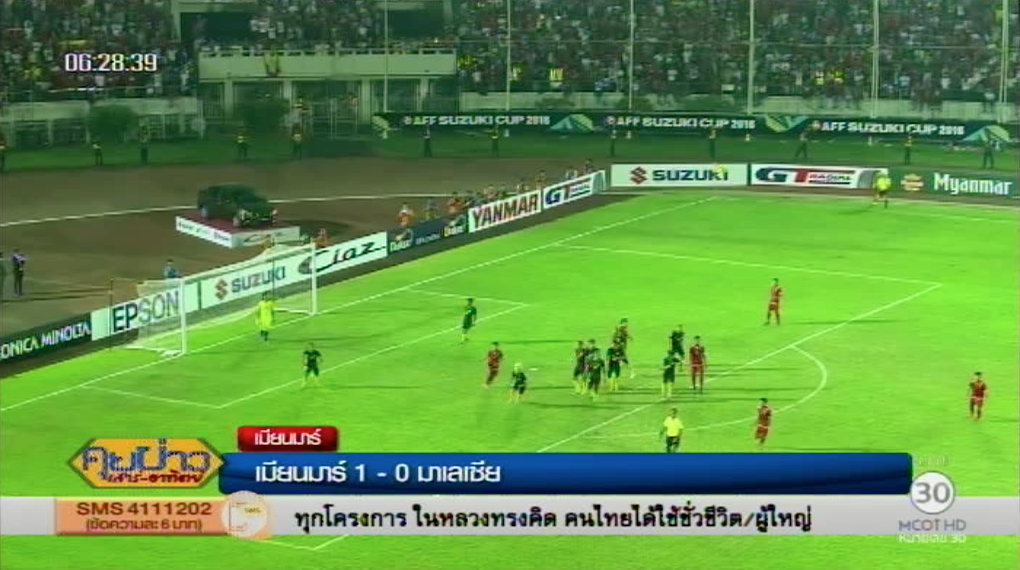 เมียนมาร์ 27 พ.ย.- ฟุตบอลชิงแชมป์อาเซียน 2016 กลุ่มบี นัดสุดท้าย เมียนมาร์ ชนะ มาเลเซีย 1-0 ผ่านเข้ารอบรองชนะเลิศไปพบกับทีมชาติไทย โดยนัดแรกแข่งขันที่เมียนมาร์ วันที่ 4 ธันวาคม 2559 ส่วนเกมอีกคู่ เวียดนาม ชนะ กัมพูชา 2-1. -สำนักข่าวไทย