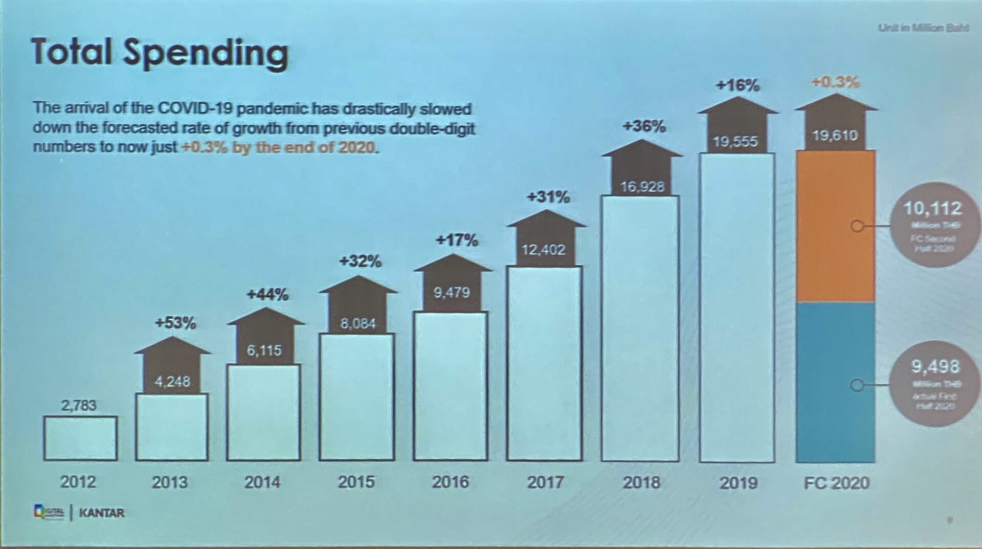 กรุงเทพฯ 3 ก.ย. สมาคมโฆษณาดิจิทัลชี้โควิด-19 ทำพิษ ทำเม็ดเงินโฆษณาผ่านสื่อดิจิทัลปี 63 โตเท่าปี 62 แค่ร้อยละ 0.3