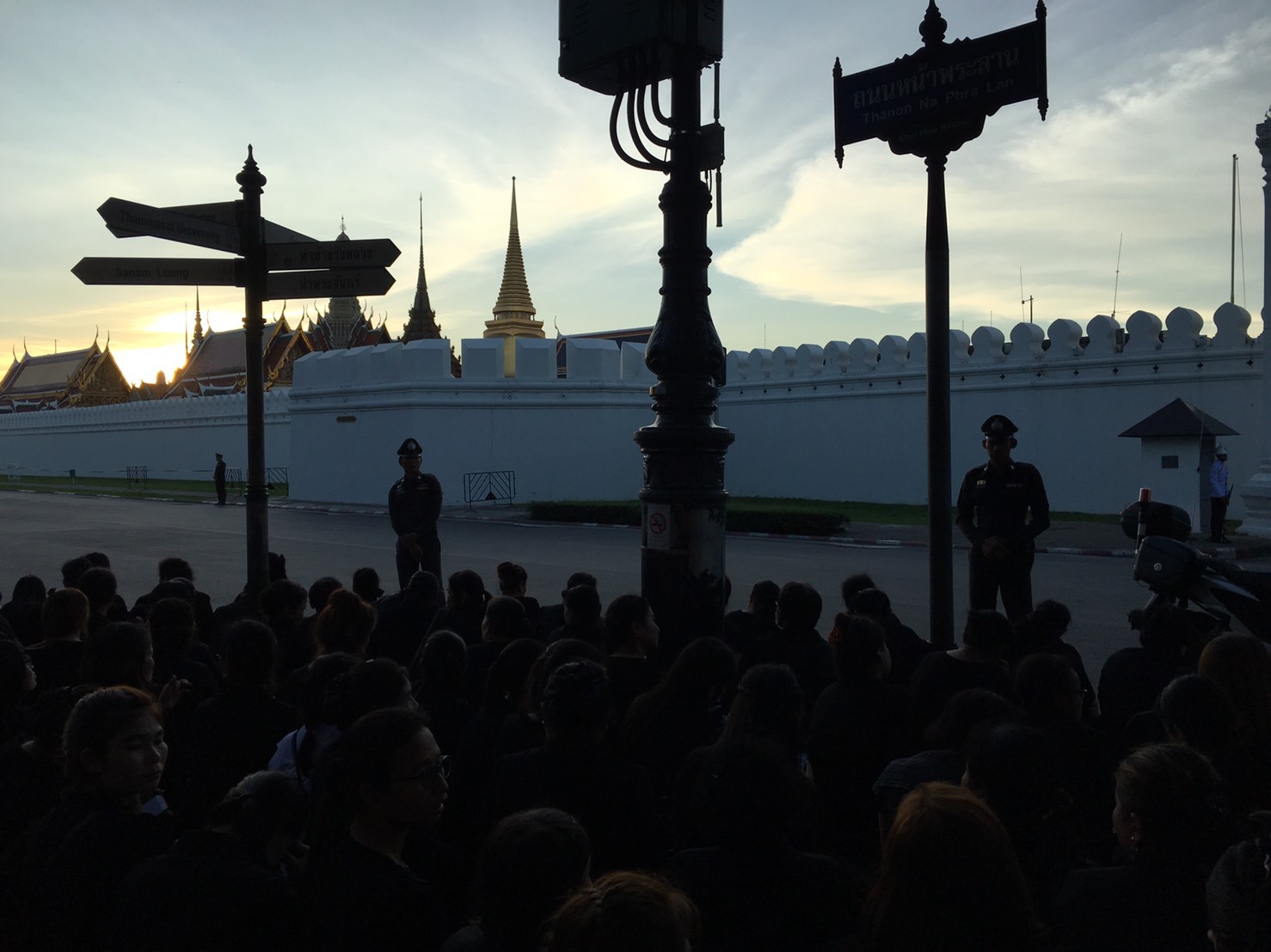 บรรยากาศบริเวณพระบรมหาราชวังตั้งแต่เช้ามืดวันนี้ (27 พ.ย.) ซึ่งเป็นวันหยุด มีพสกนิกรจำนวนมากจากทั่วทุกสารทิศต่างหลั่งไหลเดินทางมาที่บริเวณท้องสนามหลวง เพื่อเข้าคิวรอกราบถวายบังคมพระบรมศพ พระบาทสมเด็จพระปรมินทรมหาภูมิพลอดุลยเดช ณ พระที่นั่งดุสิตมหาปราสาท ในพระบรมมหาราชวัง ด้วยสำนึกในพระมหากรุณาธิคุณอันหาที่สุดมิได้ จนเต็นท์พักคอยบริเวณโซนทิศเหนือ เต็มทั้งหมด ทำให้ประชาชนอีกส่วนหนึ่งต้องยืนต่อคิวรออยู่ที่บริเวณทางเข้าฝั่งศาลฎีกาท่ามกลางสภาพอากาศที่ร้อนจัด โดยสำนักพระราชวังได้เปิดประตูวังให้เข้าไปภายในพระบรมมหาราชวังตั้งแต่ 04.40น. เพื่อให้ประชาชนมีโอกาสเข้ากราบถวายบังคมพระบรมศพอย่างทั่วถึง ประชาชนบางส่วนปักหลักรอรับเสด็จสมเด็จพระเทพรัตนราชสุดาฯ สยามบรมราชกุมารี บริเวณหน้าประตูวิเศษไชยศรี ที่เสด็จพระราชดำเนิน ทรงบำเพ็ญพระราชกุศลถวายภัตตาหารเช้า แด่พระพิธีธรรมสวดพระอภิธรรม พระบรมศพพระบาทสมเด็จพระปรมินทรมหาภูมิพล อดุลยเดช