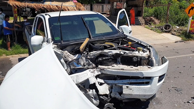 พ.ต.ท.ชัยวัชริศ สิงห์สังข์ สารวัตร (สอบสวน) สภ.เมืองกาญจนบุรี ประสานแพทย์โรงพยาบาลพหลพลพยุหเสนา และมูลนิธิพิทักษ์กาญจน์ เข้าจุดเกิดเหตุรถชนกันอย่างแรงเมื่อเวลาประมาณ 09.45 น. วันนี้ (16 ก.ย.) ทำให้มีผู้เสียชีวิตบริเวณถนนสายกาญจนบุรี-ลาดหญ้า ต.หนองบัว โดยพบรถกระบะ สีขาว ทะเบียน บว 5891 กาญจนบุรี สภาพด้านหน้าซ้ายเสียหาย ใกล้กันมีผู้เสียชีวิตเป็นชาย อายุ 35 ปี และบาดเจ็บ 1 ราย เป็นชาย อายุ 25 ปี ส่วนอีกคันเป็นรถกระบะ สีขาว ทะเบียน บย 6435 กาญจนบุรี ด้านหน้าได้รับความเสียหายเช่นกัน คนขับบาดเจ็บเป็นหญิง อายุ 62 ปี