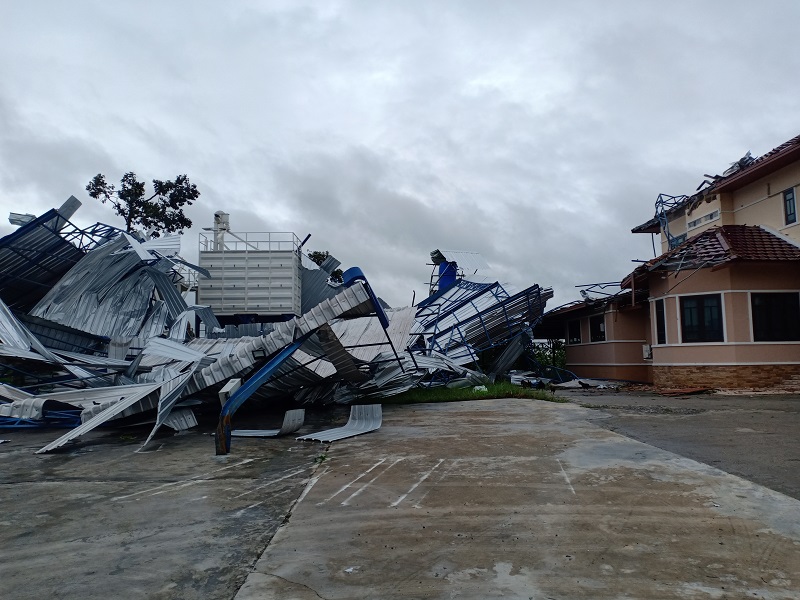สำหรับ อ.วาปีปทุม ได้รับผลกระทบ 6 หมู่บ้าน กว่า 50 หลังคาเรือน ส่วนใหญ่ถูกลมพัดหอบหลังคาหายไปทั้งแถบ รวมทั้งโรงสีย่านถนนบ้านนาเลา-หนองคูม่วง โครงเหล็กหลังคาพังลงมา ไม่มีใครได้รับบาดเจ็บ นอกจากนี้ ยังมีเสาไฟฟ้าล้มเกือบ 10 ต้น บริเวณหน้าโรงเรียนบ้านหนองคูม่วง ทำให้ไฟดับเป็นบริเวณกว้าง เจ้าหน้าที่การไฟฟ้าส่วนภูมิภาคอำเภอวาปีปทุมเร่งซ่อมแซมแก้ไข คาดว่าจ่ายกระแสไฟได้ในเวลา 20.00 น.วันนี้