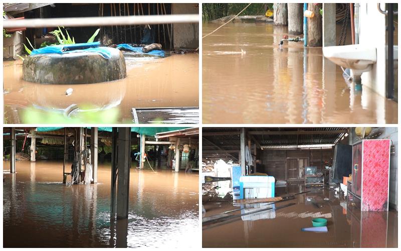 สภาพหมู่บ้านห้วยเดื่อ หมู่ 8 ต.ศรีฐาน อ.ภูกระดึง จ.เลย ประสบภาวะน้ำท่วมฉับพลันตั้งแต่เช้ามืด (20 ก.ย.) หลังเกิดฝนตกหนักตลอดคืนที่ผ่านมา ทำให้น้ำป่าจากอุทยานแห่งชาติภูกระดึงไหลลงสู่ลำน้ำพองอย่างรวดเร็วและเอ่อท่วมบ้านเรือน 15 หลังคาเรือน ชาวบ้านต้องเร่งขนย้ายสิ่งของและมาพักชั่วคราวอยู่ริมถนนภายในเต็นท์ที่ อบต.นำมาช่วยเหลือ พร้อมประสานกำนันผู้ใหญ่บ้านช่วยกันสำรวจความเสียหาย เพื่อรายงานไปยังอำเภอและจังหวัด