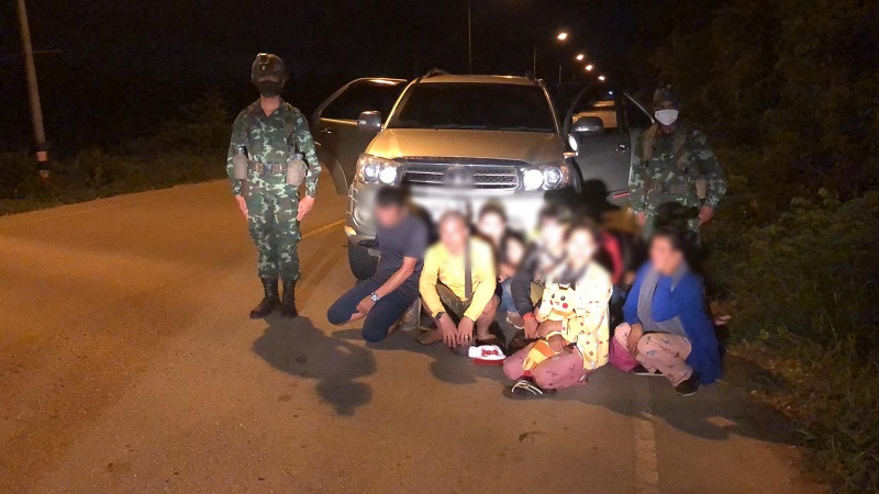 สระแก้ว 26 ก.ย.- ชุดเฉพาะกิจตาพระยาคุมเข้มชายแดนสระแก้วตลอดคืน จับแรงงานกัมพูชาลอบเข้าเมือง 13 คน ชุดแรกที่บ้านหนองไผ่ 5 คน อีกจุดรวบทั้งคนนำพาพร้อม 8 แรงงาน จะไปส่งเขตชั้นใน