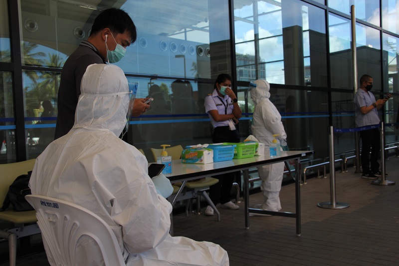 วันนี้ (30 ก.ย.) ที่ อาคาร X-Terminal ท่าอากาศยานภูเก็ต นายณรงค์ วุ่นซิ้ว ผู้ว่าราชการจังหวัดภูเก็ต ตรวจการซักซ้อมขั้นตอนกระบวนการเก็บสิ่งส่งตรวจและปฏิบัติการชีวโมเลกุล ระบบควบคุมความปลอดภัยด้วยแรงดันลบ จากกรมควบคุมโรคสำนักงานป้องกันควบคุมโรคที่ 11 จังหวัดนครศรีธรรมราช เพื่อเตรียมความพร้อมรับผู้โดยสารเดินทางระหว่างประเทศ โดยมีเรืออากาศตรี ธานี ช่วงชู ผู้อำนวยการท่าอากาศยานภูเก็ต นพ.ธนิศ เสริมแก้ว นายแพทย์สาธารณสุขจังหวัด นายทัสสยุ เดชะโชติ หัวหน้าด่านควบคุมโรคติดต่อระหว่างประเทศ ท่าอากาศยานภูเก็ต และ พญ.ดารุณี บุตรอินทร์ ผู้อำนวยการส่วนการแพทย์ ท่าอากาศยานภูเก็ต ให้ข้อมูลเรื่องดังกล่าว