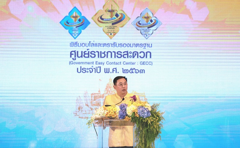 โอกาสนี้ รัฐมนตรีประจำสำนักนายกรัฐมนตรีกล่าวแสดงความยินดีกับทุกหน่วยงานที่ได้รับโล่และตรารับรองมาตรฐานการให้บริการของศูนย์ราชการสะดวก (GECC) ประจำปี พ.ศ. 2563 และขอให้ผู้บริหารแต่ละหน่วยงานตระหนักในการมุ่งมั่นพัฒนาปรับปรุงและรักษามาตรฐานการให้บริการประชาชนของศูนย์ราชการสะดวกให้ยั่งยืนตลอดไป