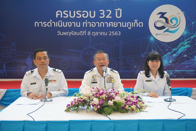วันนี้ (8 ต.ค.) ที่อาคาร X-Terminal ท่าอากาศยานภูเก็ต เรืออากาศตรีธานี ช่วงชู ผู้อำนวยการท่าอากาศยานภูเก็ต พร้อมคณะ แถลงในโอกาสครบรอบ 32 ปี การดำเนินงานของท่าอากาศยานภูเก็ต หลังได้รับโอนมาจากกรมการบินพลเรือนเมื่อวันที่ 8 ต.ค.2531 ซึ่งการดำเนินงานเป็นไปด้วยดี โดยปี 2562 ก่อนที่จะประสบปัญหาโควิด-19 ท่าอากาศยานภูเก็ตมีความคับคั่งของการให้บริการผู้โดยสารอยู่ที่ 18.622 ล้านคนต่อปี ต่อมา ม.ค.2563