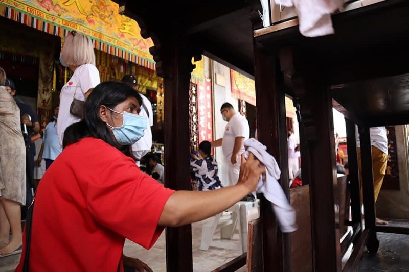ภูเก็ต 11 ต.ค.- ชาวภูเก็ตพร้อมใจร่วมทำความสะอาดศาลเจ้าหรืออ๊าม และเครื่องใช้อุปกรณ์ต่าง ๆ เตรียมเริ่มงานประเพณีถือศีลกินผัก 17-25 ต.ค.นี้