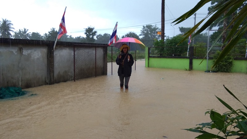 นายสนั่น ศิริสม นายกองค์การบริหารส่วนตำบลน้ำผุด อ.ละงู จ.สตูล พร้อมเจ้าหน้าที่ฝ่ายบรรเทาสาธารณภัย อบต. เร่งให้การช่วยเหลือพื้นที่ถูกน้ำป่าหลากท่วมศูนย์พัฒนาเด็กเล็กบ้านหนองหอยโข่ง หมู่ 9 พร้อมสั่งปิดชั่วคราวจนกว่าระดับน้ำจะลดลง นอกจากนี้ ยังแจ้งเตือนชาวบ้านให้เก็บของขึ้นที่สูงไว้ล่วงหน้า เนื่องจากระยะนี้ยังมีฝนตกต่อเนื่องตามคำเตือนของกรมอุตุนิยมวิทยา ขณะเดียวกันพบว่าฝนที่ตกหนักลมแรง ทำให้หลังคาบ้านในพื้นที่หมู่ 8 บ้านหนองยูง ต.น้ำผุด เสียหายไป 11 หลัง
