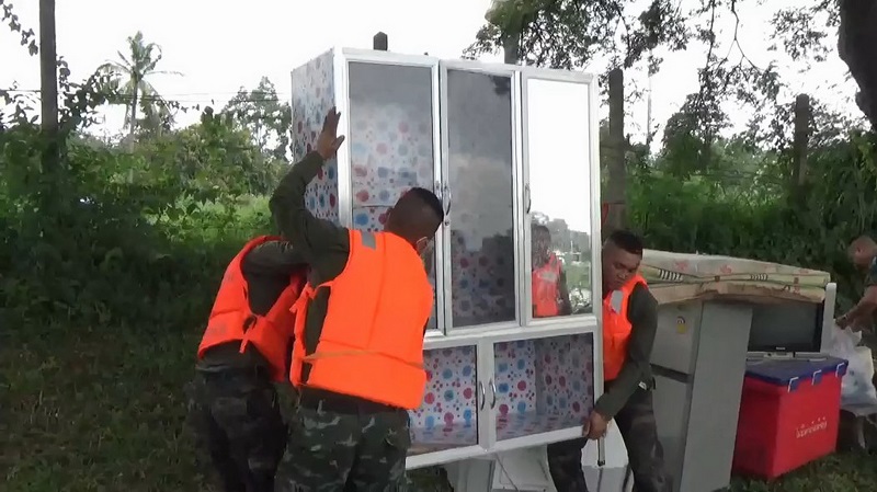 ส่วนชุมชนวังแดง เขตเทศบาลนครอุบลราชธานี ทหารจากมณฑลทหารบกที่ 22 ร่วมกับเทศบาลนครอุบลราชธานี ช่วยชาวบ้านขนย้ายสิ่งของย้ายมาพักชั่วคราวบริเวณสวนสาธารณะห้วยม่วง เนื่องจากถูกลำน้ำมูลน้อยเอ่อท่วม ซึ่งเป็นลำน้ำสาขาของแม่น้ำมูล และชุมชนดังกล่าวเป็นพื้นที่ลุ่มน้ำ อีกทั้งลำน้ำมูลน้อยมีแนวโน้มล้นตลิ่งเพิ่มขึ้น ประกอบกับศูนย์อุตุนิยมวิทยาภาคตะวันออกเฉียงเหนือตอนล่าง ประกาศเตือนเรื่องอิทธิพลของพายุดีเปรสชัน และกำลังเคลื่อนตัวทางทิศตะวันตกเฉียงเหนืออย่างช้าๆ และจะขึ้นฝั่งประเทศเวียดนามตอนกลาง ช่วงวันที่ 17-18 ตุลาคมนี้ อาจทำให้ประเทศไทยเกือบทั่วทุกภาค รวมถึงภาคตะวันออกเฉียงเหนือตอนล่าง มีฝนตกหนักถึงหนักมากบางแห่งกับมีลมแรง เบื้องต้นมีชาวชุมชนวังแดงย้ายมาพักชั่วคราวที่เต็นท์ของเทศบาลนครอุบลราชธานีจัดไว้ให้แล้ว 7 ครอบครัว ประมาณ 26 คน