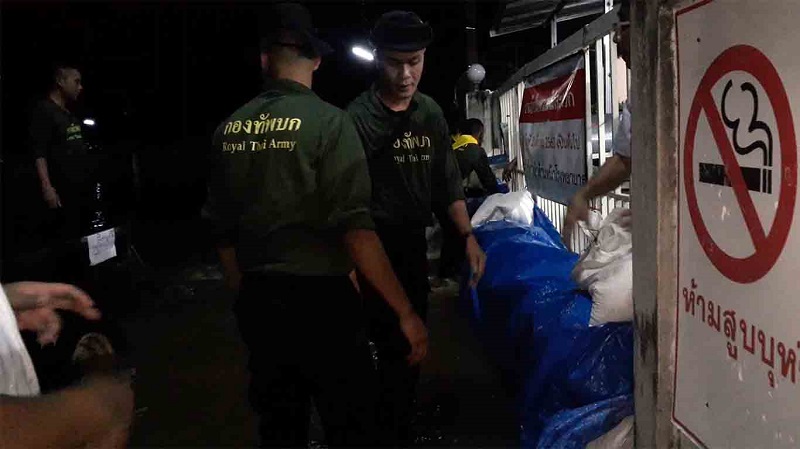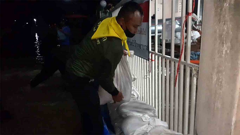 สถานการณ์น้ำท่วมในพื้นที่เขตเทศบาลเมืองอรัญประเทศ อ.อรัญประเทศ จ.สระแก้ว ล่าสุด (19 ต.ค.) ช่วงเวลา 20.00 น. เจ้าหน้าที่ทหารจิตอาสาและเจ้าหน้าที่โรงพยาบาลอรัญประเทศช่วยกันนำกระสอบทรายจำนวน 2 คันรถ วางแนวกั้นน้ำบริเวณด้านหลังโรงพยาบาล จำนวน 3 จุด เนื่องจากพื้นที่รอบนอกมีน้ำท่วมเป็นวงกว้างระดับน้ำเฉลี่ย 50-150 เซนติเมตร ส่งผลให้น้ำได้ผุดขึ้นตามท่อระบายน้ำของโรงพยาบาล ท่วมบริเวณทางเข้า-ออกด้านหลัง