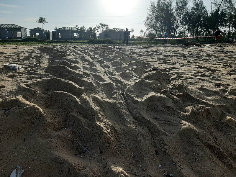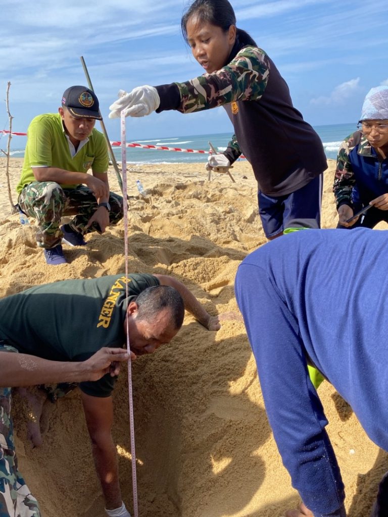นายปรารพ แปลงงาน หัวหน้าศูนย์ปฏิบัติการอุทยานแห่งชาติทางทะเลที่ 2 จังหวัดภูเก็ต เปิดเผยว่า ได้รับแจ้งจากนายองอาจ สายราย้า ชาวบ้านต้นแซะ หมู่ 8 ต.โคกกลอย อ.ตะกั่วทุ่ง จ.พังงา ช่วงเช้าที่ผ่านมาว่า ขณะออกตกปลาพบร่องรอยการขึ้นวางไข่ของเต่าทะเลบริเวณชายหาดบางขวัญ ต.โคกกลอย อ.ตะกั่วทุ่ง จ.พังงา จึงประสานหัวหน้าอุทยานแห่งชาติเขาลำปี-หาดท้ายเหมือง นำเจ้าหน้าที่เข้าตรวจสอบพบรอยดังกล่าวเป็นรอยของเต่าขนาดใหญ่ ประมาณความกว้างของอก 94 ซม. ความกว้างพาย 182 ซม. ระยะทางจากรอยขึ้นถึงชายน้ำ 30 เมตร เจ้าหน้าที่ใช้เวลากว่า 2 ชั่วโมง จึงพบไข่เต่า วัดความลึกของหลุมได้ 76 ซม. ความกว้าง 34 ซม. ความยาวของหลุมไข่ 46 ซม. เนื่องจากตำแหน่งขึ้นวางไข่ไม่ได้รับผลกระทบจากน้ำทะเลท่วมถึง จึงไม่ทำการย้ายรัง โดยจะทำคอกกั้น และจัดเจ้าหน้าที่เฝ้าระวังตลอด 24 ชั่วโมง จนกว่าลูกเต่าจะฟักตัว คาดว่าใช้เวลา 55-60 วัน