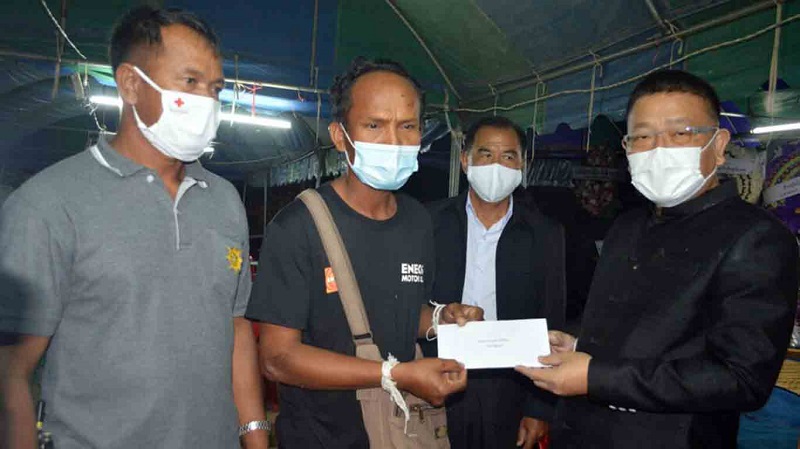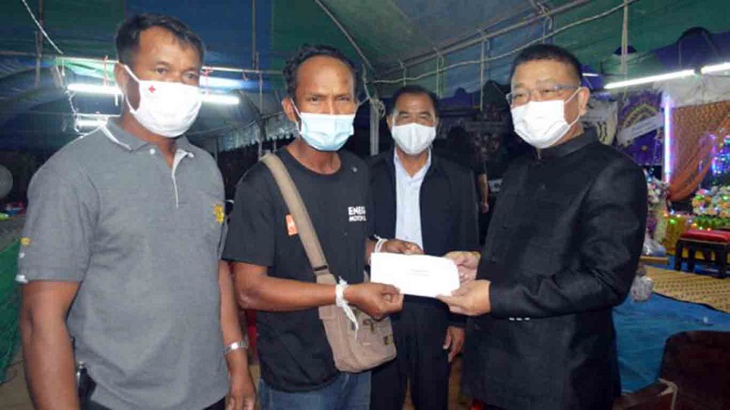 ทั้งนี้ เมื่อคืนที่ผ่านมา (24 ต.ค.) นายเกียรติศักดิ์ จันทรา ผู้ว่าราชการจังหวัดสระแก้ว นายวินัย โตเจริญ นายอำเภอตาพระยา พร้อมหัวหน้าส่วนราชการ มาร่วมพิธีฟังสวดพระอภิธรรมที่บ้านพักของนางสมศรี และตัวแทนจาก ปตท. ได้มอบเงินเยียวยาในเบื้องต้นแก่นายมานพ เย็น แมน อายุ 42 ปี สามีของผู้เสียชีวิต เพื่อใช้ในการจัดงานศพ ส่วนด้านอื่น ๆ ทาง ปตท.ให้การช่วยเหลือดูแลผู้ประสบเหตุทุกราย