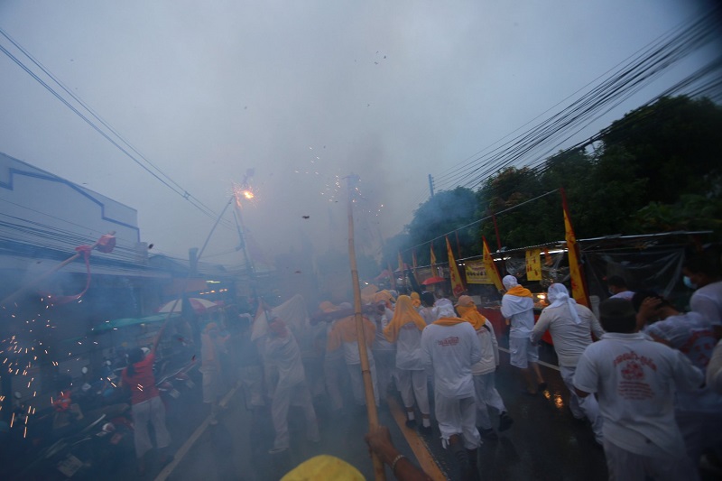 ภูเก็ต 25 ต.ค.- ชุ่มฉ่ำ! ศาลเจ้าหล่อโรงแห่พระรอบเมืองวันสุดท้ายของงานถือศีลกินผักจังหวัดภูเก็ตปีนี้ ท่ามกลางสายฝน ทุกศาลเจ้าเตรียมส่งพระยิ่งใหญ่คืนนี้