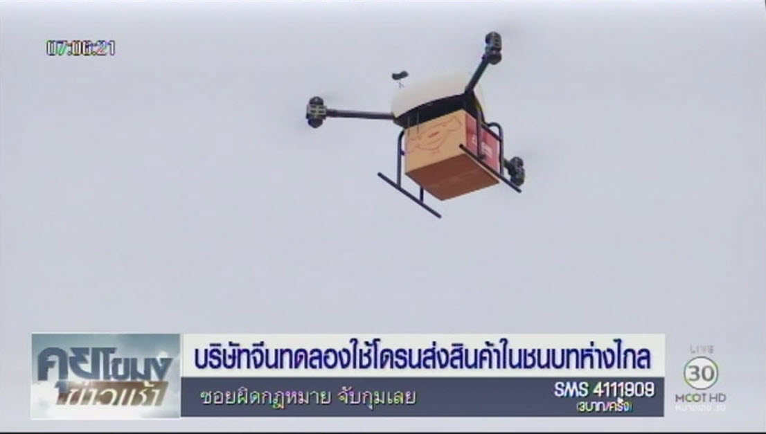 จีน 25 พ.ย.-โดรน หรืออากาศยานไร้คนขับ กลายเป็นอุปกรณ์ไฮเทคที่คนทั่วไปสามารถเป็นเจ้าของได้ไม่ยาก มันถูกใช้เป็นทั้งอุปกรณ์เสริมในการทำงาน เช่น ถ่ายภาพมุมสูง หรือเป็นของเล่น หรืองานอดิเรกของใครหลายคน ล่าสุด ที่ประเทศจีน โดรนถูกใช้สำหรับส่งสินค้าที่มีคนสั่งซื้อทาง E-Commerce