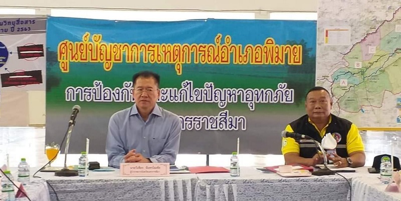 นายวิเชียร จันทรโณทัย ผู้ว่าราชการจังหวัดนครราชสีมา ประชุมร่วมกับนายกิติกุล เสภาศีราภรณ์ ผู้อำนวยการโครงการชลประทานนครราชสีมา และหน่วยงานที่เกี่ยวข้อง วันนี้ (27 ต.ค.) ที่ห้องประชุมที่ว่าการอำเภอพิมาย เพื่อประเมินสถานการณ์น้ำในการวางแผนรับมือพายุลูกใหม่ “โมลาเบ” อาจมีฝนตกหนักและหนักมากช่วงวันที่ 28-30 ต.ค.นี้ ล่าสุดลำน้ำมูลที่สถานีวัดน้ำบริเวณเขื่อนพิมายมีปริมาณน้ำเพิ่มอย่างต่อเนื่อง ระดับน้ำต่ำกว่าจุดวิกฤติ 15 เซนติเมตร จึงต้องเฝ้าระวังพื้นที่ราบลุ่มริมฝั่งอย่างใกล้ชิด