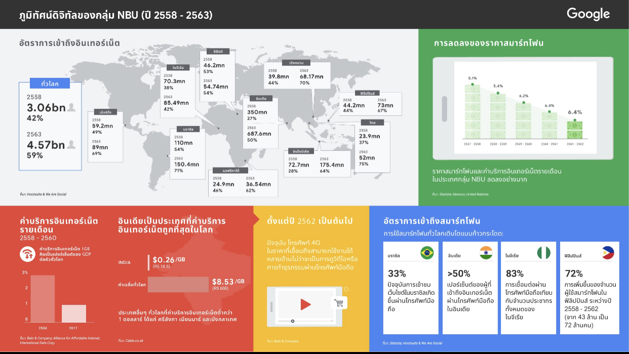 กูเกิลรายงานผลการศึกษาผู้ใช้อินเทอร์เน็ตหน้าใหม่ในยุคโควิด-19 โดยศึกษาผลกระทบของการระบาดของโรคโควิด-19 ที่มีต่อผู้ใช้อินเทอร์เน็ตหน้าใหม่ (New Internet User) พบว่า การศึกษาล่าสุดของทีม Next Billion Users ขพบว่า กลุ่มผู้ใช้อินเทอร์เน็ตหน้าใหม่ (New Internet User) ได้รับผลกระทบทางเศรษฐกิจและสังคมจากการแพร่ระบาดของโควิด-19 มากกว่ากลุ่มอื่น ความท้าทายที่เกิดจากการแพร่ระบาดทั่วโลกของไวรัสโควิด-19 ทำให้ความเหลื่อมล้ำในการใช้ประโยชน์จากอินเทอร์เน็ตเพิ่มมากขึ้น ส่งผลให้ปัญหาต่างๆ ที่ผู้ใช้อินเทอร์เน็ตหน้าใหม่ต้องเผชิญนั้นหนักหนายิ่งขึ้นไปอีก เมื่อบริการที่จำเป็นต่างๆ เช่น การพาณิชย์ การศึกษา บริการด้านสุขภาพ และบริการอื่นๆ ของภาครัฐ ถูกนำไปไว้บนโลกออนไลน์เพื่อรับมือกับรูปแบบวิถีชีวิตใหม่ ทำให้คุณภาพชีวิตของผู้ที่ไม่สามารถเข้าถึงโลกออนไลน์ได้ตลอดเวลานั้นลดลง ปัญหาที่มีอยู่ในปัจจุบัน ไม่ว่าจะเป็นเรื่องของการขาดความรู้และทักษะด้านดิจิทัล และการเข้าถึงอินเทอร์เน็ตหรืออุปกรณ์ที่ใช้ในการเชื่อมต่ออินเทอร์เน็ตที่มีอยู่อย่างจำกัด ได้กลายเป็นปัญหาที่หนักหนาขึ้น และอาจทำให้ผู้ที่มีอุปสรรคในการเข้าถึงอินเทอร์เน็ตไม่สามารถไล่ตามคนอื่นๆ ได้ทัน และเข้าสู่โลกออนไลน์ได้ช้ากว่าคนอื่น
