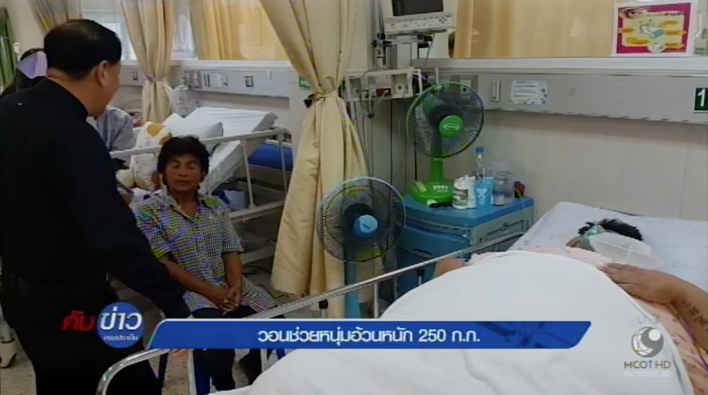 นายรุ่งโรจน์ ชนะภัย หรือน้องแนน อายุ 29 ปี น้ำหนักตัวประมาณ 250 กิโลกรัม ป่วยเป็นโรคอ้วน เดินไม่ได้ พักรักษาตัวอยู่ที่โรงพยาบาลสมเด็จพระพุทธเลิศหล้า ต.แม่กลอง อ.เมือง จ.สมุทรสงคราม โดยมีมารดาคอยเฝ้าดูแล ระบุลูกชายหลังจากเรียนจบ ม.3 ช่วงอายุ 15 ปี มีอาการอ้วนมาตลอด จึงไม่ได้เรียนต่อชั้น ม.4 ออกมารักษาตัว กระทั่งระยะหลังมีโรคแทรกซ้อน มีอาการเหนื่อยเข้ารักษาตัวโรงพยาบาล แพทย์วินิจฉัยเป็นความดันสูง หัวใจโต น้ำท่วมปอด แพทย์ให้ยาขับปัสสาวะ พอดีขึ้นก็กลับบ้านเข้าออกโรงพยาบาลเป็นประจำตลอดมา จะเข้ารักษาตัวที่โรงพยาบาลในกรุงเทพก็ไม่มีเงิน ล่าสุดเมื่อ 4 วันก่อนบุตรชายบอกว่าท้องแข็งมากและออกด้านข้างนอนตะแคงก็เจ็บกลัวท้องแตก จึงกลับเข้ามารักษาตัวที่โรงพยาบาลสมเด็จพระพุทธเลิศหล้าอีกครั้ง จึงวอนให้หน่วยงานที่เกี่ยวข้องช่วยพาบุตรชายไปรักษาตัวให้หายใช้ชีวิตเป็นปกติเหมือนเดิม