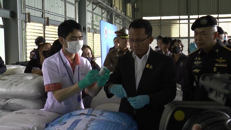 เมื่อเวลา 15.00 น. (12 พ.ย.) นายสมศักดิ์ เทพสุทิน รัฐมนตรีว่าการกระทรวงยุติธรรม พล.ต.ท.มนตรี ยิ้มแย้ม ผู้บัญชาการตำรวจปราบปรามยาเสพติด นายวิชัย ไชยมงคล เลขาธิการคณะกรรมการป้องกันและปราบปรามยาเสพติด (ป.ป.ส.) พล.ต.ต.ชาคริต สวัสดี ผบก.ภ.จว.ฉะเชิงเทรา และ พ.ต.อ.กิตติสัณห์ ชะนะ ผกก.สภ.บางปะกง แถลงผลการตรวจยึดยาเคตามีน 11.5 ตัน ภายในโกดังสินค้าในพื้นที่ ม.6 ต.ท่าข้าม อ.บางปะกง จ.ฉะเชิงเทรา หลังจากสำนักงาน ป.ป.ส. ได้สืบทราบว่ามีการลักลอบเคตามีนไว้ที่โกดังแห่งหนึ่งที่ฉะเชิงเทรา เตรียมส่งข้ามประเทศ จึงประสาน ปปส.ภาค 2 ตำรวจ สภ.บางปะกง และอีกหลายหน่วยงานเข้าตรวจค้นโกดังเป้าหมายสามารถตรวจยึดของกลางดังกล่าว