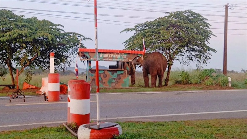 เมื่อเวลา 06.30 น. (22 พ.ย.) เจ้าหน้าที่ทหารพรานที่ 1306 ชุดปฏิบัติการด่านตรวจทับกำนัน หมู่ 19 บ้านนางาม ต.ท่ากระดาน อ.สนามชัยเขต จ.ฉะเชิงเทรา คอยดูแลความปลอดภัยของประชาชนที่จะใช้เส้นทางดังกล่าว เพื่อไม่ให้สัญจรจุดที่มีโขลงเดินออกมากว่า 30 ตัว และช้างงาอยู่ในอาการตกมันรื้อแผงกั้นด่านและเพิงพักจุดตรวจล้มระเนระนาด