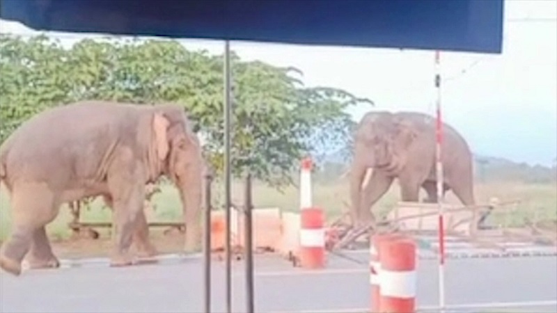 ส.อ.บุญโชค แก้วสิงทอง ผบ.ชุดปฏิบัติการด่านตรวจทับกำนัน ทหารพรานที่ 1306 เล่าว่า ก่อนหน้านี้ได้ประสานกับเจ้าหน้าที่ชุดปฏิบัติการเฝ้าระวังช้างป่า เขตรักษาพันธุ์สัตว์ป่าเขาอ่างฤาไน คาดการณ์ว่าช้างป่าที่ไปหากินอยู่นอกแนวป่าจะเดินกลับเข้าป่าลึกของเขตรักษาพันธุ์สัตว์ป่าเขาอ่างฤาไน และมีแนวโน้มใช้เส้นทางสายสนามชัยเขต-บ้านนายาว บริเวณด่านจุดตรวจกำนัน บ้านนางาม จึงได้เฝ้าระวังสถานการณ์เพื่อป้องกันอันตรายกับผู้ใช้เส้นทาง ปรากฏว่ามีช้าง 1 ตัว อยู่ในอาการตกมันสู้กับช้างอีกตัว คาดว่าเป็นจ่าฝูงของช้างที่นำโขลงกว่า 30 ตัว เดินผ่านเส้นทางด่านทับกำนัน เจ้าหน้าที่จำเป็นต้องใช้วัสดุอุปกรณ์ทำให้เกิดเสียงดัง เพื่อปรามเหตุ จากนั้นช้างทั้งสองตัวได้แยกจากกันและพากันเดินหลบเข้าไปในป่าข้างทาง ส่วนช้างที่ตกมันได้รื้อแผงกั้นใกล้ด่านล้ม อย่างไรก็ตาม เหตุการณ์ครั้งนี้ไม่มีประชาชนหรือเจ้าหน้าที่ได้รับอันตราย.-สำนักข่าวไทย