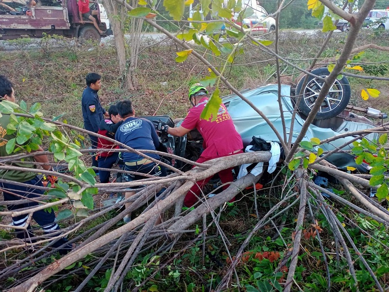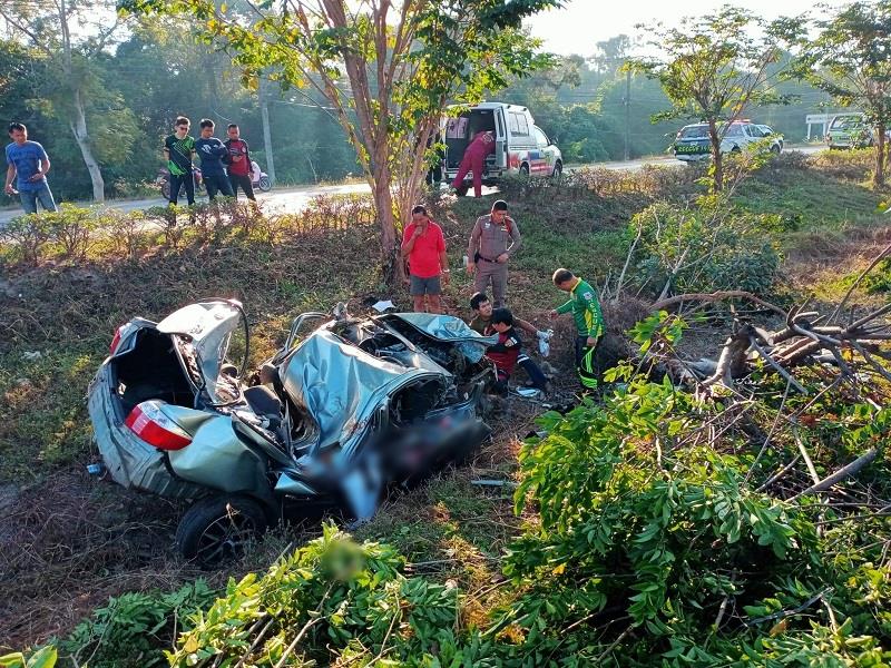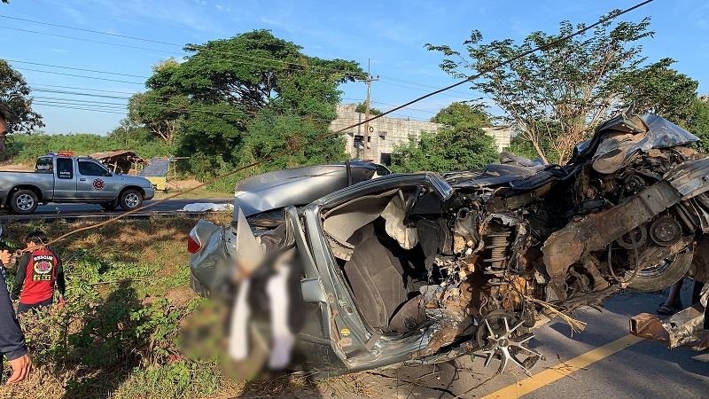 หนองคาย 22 พ.ย.- พังทั้งคัน! เก๋งอัดต้นไม้อย่างแรงพลิกหงายท้องถนนสายหนองคาย ชายคนขับ วัย 23 ปี เสียชีวิต ส่วนเพื่อนสาหัส คาดสาเหตุหลับใน