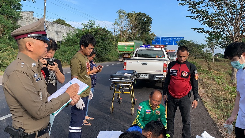 พ.ต.ท.ไตรเทพ ไตรยางค์ สารวัตร (สอบสวน) สภ.เมืองหนองคาย ประสานแพทย์ หน่วยกู้ภัยชบา 191 และหน่วยกู้ภัยประจักษ์ เร่งช่วยเหลืออุบัติเหตุเมื่อเวลา 06.20 น. (22 พ.ย.) รถเก๋ง รุ่นวีออส สีบรอนซ์เทา ทะเบียน กฉ 2230 หนองคาย ชนต้นไม้อย่างแรงหัก 2 ต้น และพลิกหงายท้องตกร่องกลางถนนมิตรภาพ ก่อนถึงด่านตรวจหนองสองห้อง ฝั่งขาเข้าเมืองหนองคาย พบว่าคนขับถูกอัดเสียชีวิตที่เบาะนั่งเป็นชาย วัย 23 ปี ส่วนเพื่อนชายอีกคน อายุ 25 ปี เจ็บสาหัส ถูกนำส่งโรงพยาบาลหนองคาย การตรวจสอบเบื้องต้นสันนิษฐานว่าคนขับอาจหลับในจากการเดินทาง และที่บริเวณจุดเกิดเหตุไม่พบร่องรอยของการเบรก.-สำนักข่าวไทย