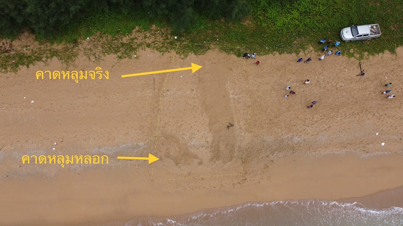 นายจักรพันธ์ ม่วงยิ้ม ผู้อำนวยการส่วนส่งเสริมและประสานงานเครือข่าย สำนักบริหารทรัพยากรทางทะเลและชายฝั่งที่ 6 (สทช.6) กล่าวว่า จากการตรวจสอบเบื้องต้นลักษณะรอยของพายหน้าจากซ้ายถึงขวากว้างประมาณ 192 เซนติเมตร ความกว้างหน้าอก 100 เซนติเมตร คาดเป็นแม่เต่ามะเฟือง นอกจากนี้ ยังพบร่องรอยที่คาดว่าจะเป็นหลุมไข่ของแม่เต่า บริเวณใกล้กับผักบุ้งทะเล และใกล้กับน้ำทะเลท่วมถึง โดยทั้ง 2 จุด ไม่เอื้อต่อการเพาะฟัก และพบว่าแม่เต่ารังนี้มีลักษณะการขึ้นมาวางไข่ที่แปลกไปจากตัวอื่น คือ คลานขึ้นมาวางไข่ และลงทะเลในทางเดียวกัน รวมทั้งมีไข่ลมบริเวณผิวทรายใกล้จุดน้ำทะเลท่วมถึง เจ้าหน้าที่จึงจำเป็นที่จะต้องถ่ายภาพมุมสูง เพื่อเก็บพฤติกรรมของแม่เต่า ก่อนขุดย้ายไข่เต่าเพื่อทำการเพาะฟักต่อไป.-สำนักข่าวไทย
