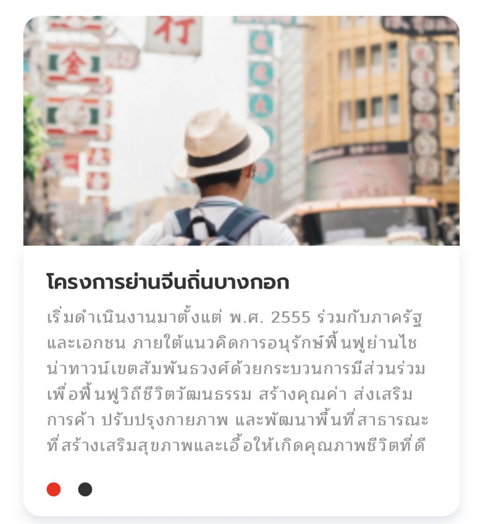 โครงการได้จัดทำเว็บแอพพลิเคชั่นเดินไชน่าทาวน์ (walk.in.th) ขึ้นภายใต้แนวคิด“ สารานุกรมชุมชนเพราะข้อมูล(Data) คือสิ่งที่มีความสำคัญในยุคปัจจุบันผู้มีข้อมูลคือผู้กุมอำนาจและอำนาจควรอยู่ในมือของชุมชนเจ้าของพื้นที่โดยที่ชุมชนมีส่วนเป็นเจ้าของและสามารถบริหารจัดการข้อมูลได้ด้วยตนเองสามารถเพิ่มเติมข้อมูลใหม่ ๆ ของย่านรวมถึงหลักฐานทางประวัติศาสตร์ที่เพิ่งค้นพบในสารานุกรมออนไลน์ฉบับนี้ได้อย่างอิสระโดยเว็บแอพพลิเคชั่น“ เดินไชน่าทาวน์ (walk.in.th) สามารถนำมาต่อยอดการใช้งานได้หลายรูปแบบนอกจากช่วยจัดการข้อมูลด้านความรู้และประวัติศาสตร์ของชุมชนแล้วฟังก์ชันสำคัญคือการเป็นระบบพาเดินเที่ยวที่ใช้งานผ่านเว็บไซต์ที่สามารถเก็บข้อมูลของผู้ใช้งานไว้ได้เหมือนแอพพลิเคชั่นทำหน้าที่เป็นระบบนำทางช่วยเหลือด้านการเดินท่องเที่ยว (Town Guide) ที่รวบรวม10 เส้นทางน่าเดินในไชน่าทาวน์และแนะนำกิจกรรมหรือเทศกาลอื่น ๆ ในย่านแก่นักท่องเที่ยวผู้มาเยี่ยมเยือนเพื่อกระตุ้นให้เกิดกิจกรรมทางเศรษฐกิจและวัฒนธรรมภายในพื้นที่และเป็นเสมือนหน้าต่างประชาสัมพันธ์ที่เชื่อมเจ้าบ้านทั้ง 16 ชุมชนและผู้มาเยี่ยมเยือนเข้าหากันโดยผู้ใช้งานสามารถมอบข้อเสนอแนะเพื่อนำไปวางแผนพัฒนาปรับปรุงพื้นที่ต่อในอนาคตนอกจากนี้ผู้ใช้งานยังสามารถแชร์เส้นทางและความสนุกจากการท่องเที่ยว“ ไชน่าทาวน์ลงในโซเชียลมีเดียส่วนตัวได้เพื่อให้การสร้าง-สำนักข่าวไทย.