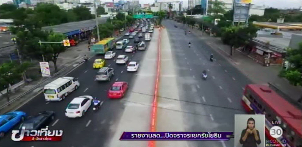 รถติดหนึบสะสม วันแรกขยายเวลาปิดแยกรัชโยธิน คาบเกี่ยวชั่วโมงเร่งด่วน