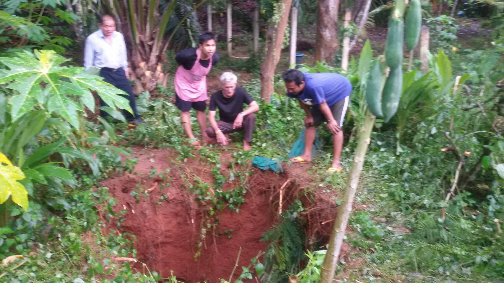 กระบี่ 24 พ.ย. – ฝนตกหนักต่อเนื่อง ทำให้ถนนในหมู่บ้านกระทูนใหม่ จ.กระบี่ เกิดหลุมยุบตัวกว้างกว่า 3 เมตร ลึกกว่า 3 เมตร