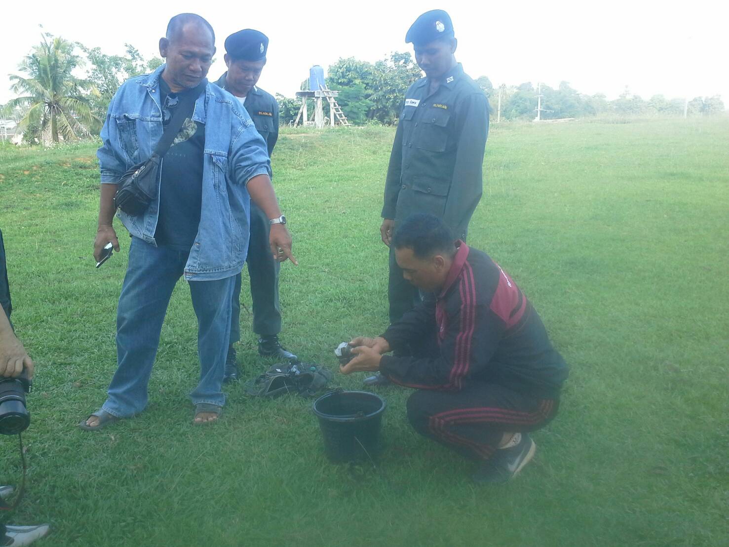 เชียงราย 23 พ.ย.- จนท.เชียงรายกู้วัตถุระเบิด 4 ลูกใส่กระเป๋าวางทิ้งไว้ริมถนนใกล้ท่าเรือแม่น้ำโขงอำเภอเชียงของ คาดว่าเป็นของกลุ่มวัยรุ่นคึกคะนอง