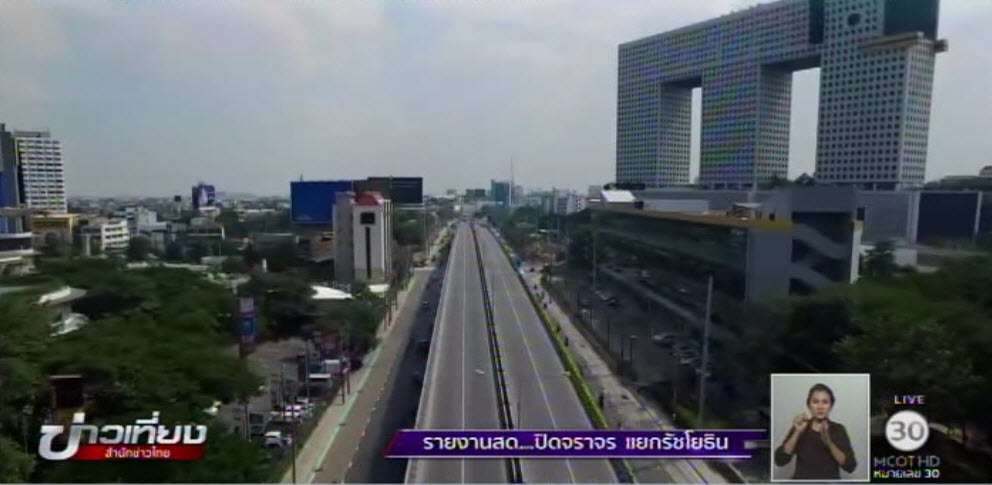 การจราจรทุกเส้นทางที่มุ่งหน้าเข้าสี่แยกรัชโยธิน จากถนนรัชดาภิเษก ถนนวิภาวดีรังสิต ถนนพหลโยธิน และถนนกำแพงเพชร ตั้งแต่ช่วงเช้าเป็นไปอย่างคล่องตัว ไม่มีปัญหาการสะสมของรถทั้งขาเข้าขาออก เป็นไปตามแผนของตำรวจที่ใช้วิธีบริหารปริมาณรถด้วยการใช้สัญญาณไฟจราจรตามจังหวะการเคลื่อนตัวของรถ ประกอบกับเตรียมสภาพถนนสายข้างเคียงโดยรอบสี่แยกรัชโยธินให้พร้อมรับปริมาณรถที่ออกจากสี่แยก