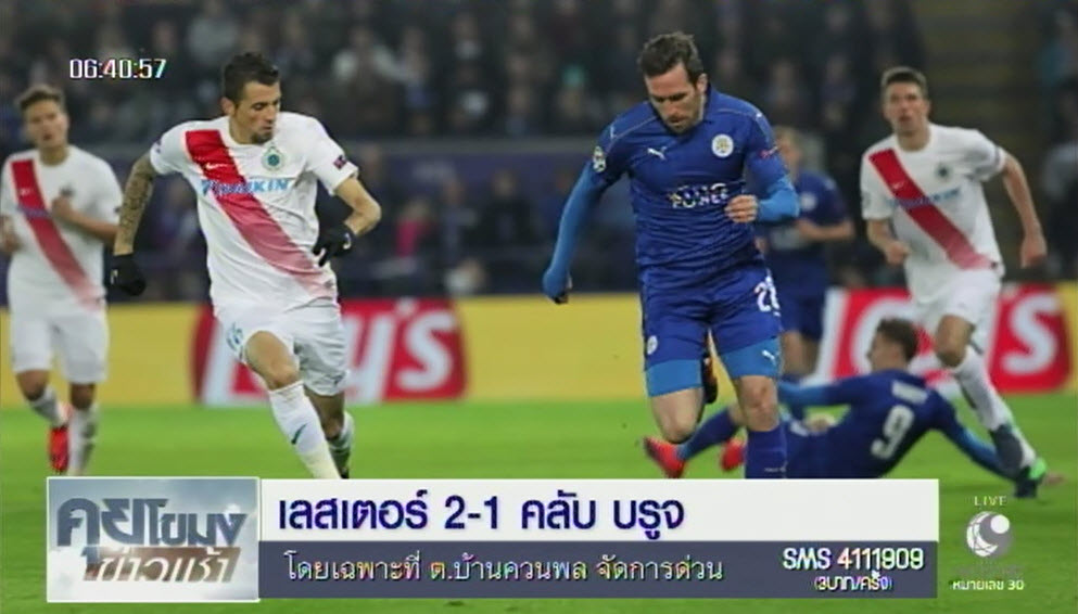 ผลฟุตบอลยูฟ่า แชมเปี้ยนส์ ลีก รอบแบ่งกลุ่ม นัดที่ 5 เกมในกลุ่ม จี ที่สนามคิง พาวเวอร์ สเตเดี้ยม “สุนัขจิ้งจอก” เลสเตอร์ ซิตี้ เปิดบ้านพบกับ คลับ บรูจ จากเบลเยียม โดยเลสเตอร์ นำก่อน จาก ชินจิ โอกาซากิ นาทีที่ 5 และ จุดโทษของริยาด มาห์เรซ นาทีที่ 30 ก่อนที่ครึ่งหลัง โฮเซ่ อิซเควียร์โด้ จะตีไข่แตกให้คลับ บรูจ ไล่มาแต่ไม่ทัน จบเกม เลสเตอร์ ชนะ 2-1 เก็บอีกสามแต้มมีเพิ่มเป็น 13 คะแนนจาก 5 เกม ผ่านเข้ารอบ 16 ทีมสุดท้ายในฐานะแชมป์กลุ่มแน่นอนแล้ว