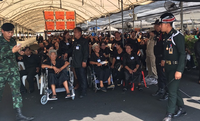 ผู้สื่อข่าวรายงานว่า ประชาชนจำนวนมากยังคงหลั่งไหลมาเข้าคิวเพื่อรอ ตั้งแต่เช้ามืดเพื่อ เข้าไปกราบถวายบังคมพระบรมศพพระบาทสมเด็จพระปรมินทรมหาภูมิพลอดุลยเดช ท่ามกลางสภาพอากาศในวันนี้ที่ร้อนอบอ้าวจึงนำพัดมาพัดเพื่อให้ผ่อนคลายความร้อน และใช้บริการยืมร่มที่วางไว้จุดต่างๆ เวลาลาแถวไปเข้าห้องน้ำหรือทำภารกิจส่วนตัว แต่ทุกคนก็ไม่ย่อท้อเพราะเป็นโอกาสครั้งหนึ่งในชีวิตที่จะได้เข้ากราบถวายบังคมพระบรมศพอย่างใกล้ชิด