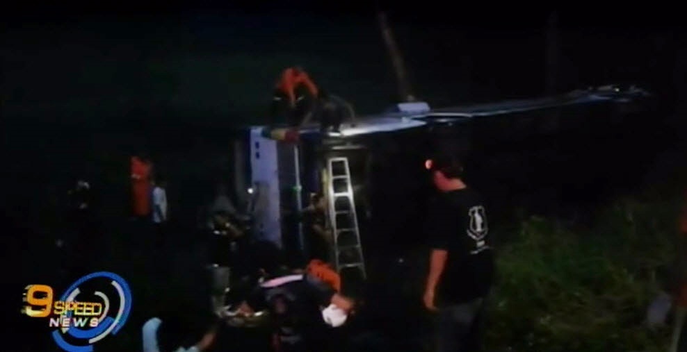 สุราษฎร์ธานี 21 ธ.ค. – เกิดอุบัติเหตุรถทัวร์ ทะเบียน 33-2468 กรุงเทพมหานคร พลิกคว่ำชนต้นไม้ บริเวณถนนสายเอเชีย 41 ขาล่องใต้ ต.ประสงค์ อ.ท่าชนะ จ.สุราษฎร์ธานี ทำให้นักท่องเที่ยวชาวเนปาลบาดเจ็บ 15 คน ในจำนวนนี้สาหัส 5 คน ถูกนำตัวส่งโรงพยาบาลท่าชนะ จากการสอบสวนทราบว่า นักท่องเที่ยวทั้งหมดเช่าเหมารถทัวร์จากกรุงเทพฯ ไปเที่ยว จ.กระบี่ เมื่อมาถึงจุดเกิดเหตุมีฝนตกหนัก ทำให้ถนนลื่น รถจึงเสียหลักพลิกคว่ำตกลงข้างทาง. – สำนักข่าวไทย